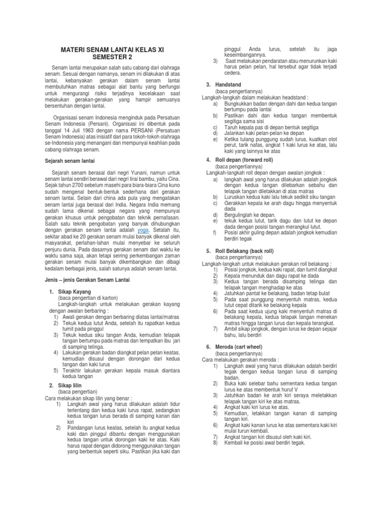 - Contoh Soal: "Untuk mengurangi risiko cedera saat melakukan gerakan senam lantai seperti guling depan, alat apa yang paling penting digunakan di lantai?"