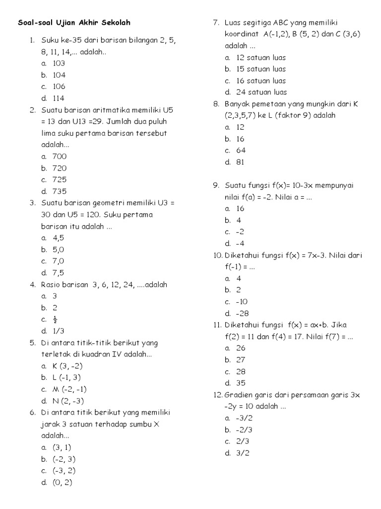 Latihan Soal yang Bervariasi: Kumpulan soal dari berbagai sekolah atau daerah seringkali menawarkan variasi dalam bentuk soal, tingkat kesulitan, dan penekanan pada topik-topik tertentu. Ini memberikan kesempatan bagi siswa untuk terpapar pada berbagai gaya penulisan soal dan menguji pemahaman mereka dari berbagai sudut pandang.